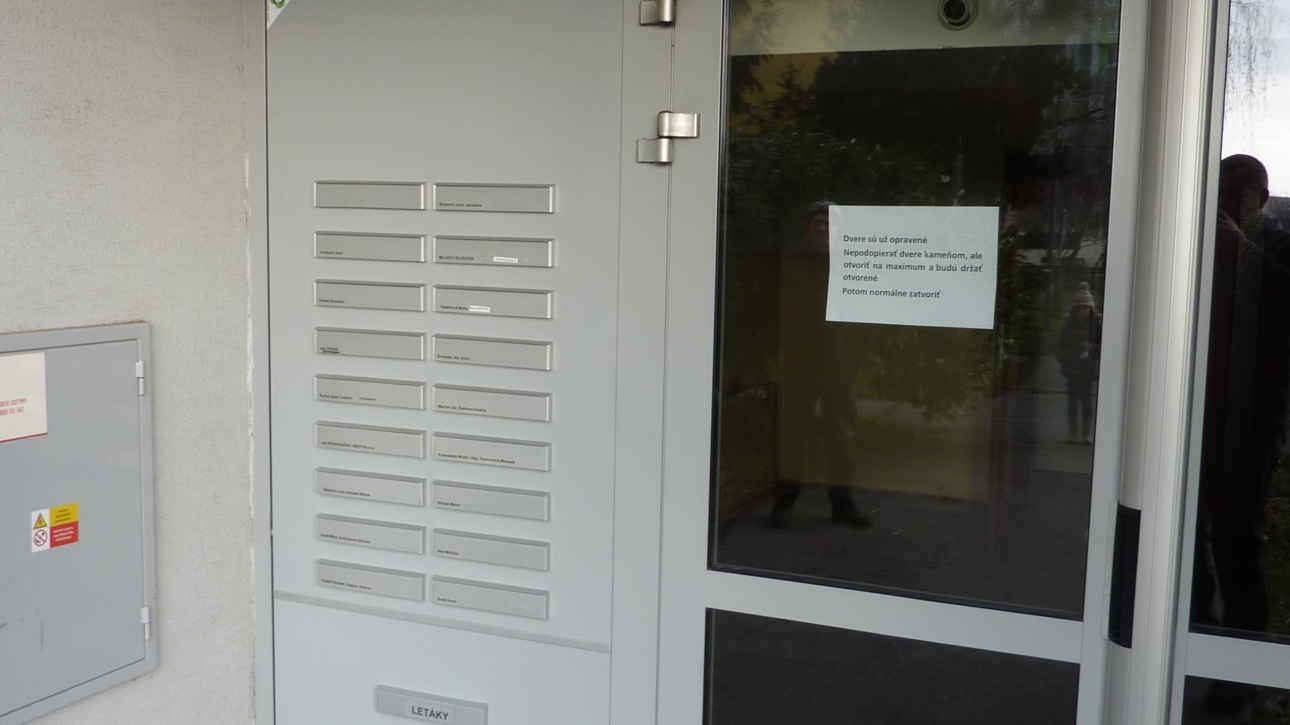 V našich pôvodných hliníkových dverách sme mali osadené schránkové boxy od slovenskej spoločnosti MARBOX. Cez tieto boxy doslova prefukovalo do interiéru vestibuly, čo bolo hlavne v mrazivých zimných dňoch neúnosné. Veľmi dlhú dobu sme pátrali po rozumnom riešení tohto problému. Len náhodou sme zistili, že priamo v našom meste je spoločnosť, ktorá vyrába schránkové boxy s prerušeným tepelným mostom. Realizácia bola veľmi rýchla. Naše pôvodné schránkové boxy vymenili za vlastné výrobky. Upravili konštrukciu pôvodných hliníkových dverí tak, aby boli vo dverách osadené vhody na letáky, taktiež s prerušeným tepelným mostom. Celkovo toto nové riešenie prešlo testom v zimných mesiacoch na výbornú. Nielenže cez nové schránkové boxy nefúka ale ani nepremŕza interiér vestibuly, v ktorej je teraz príjemné teplo napriek tomu, že vonku je mrazivo a veterno.